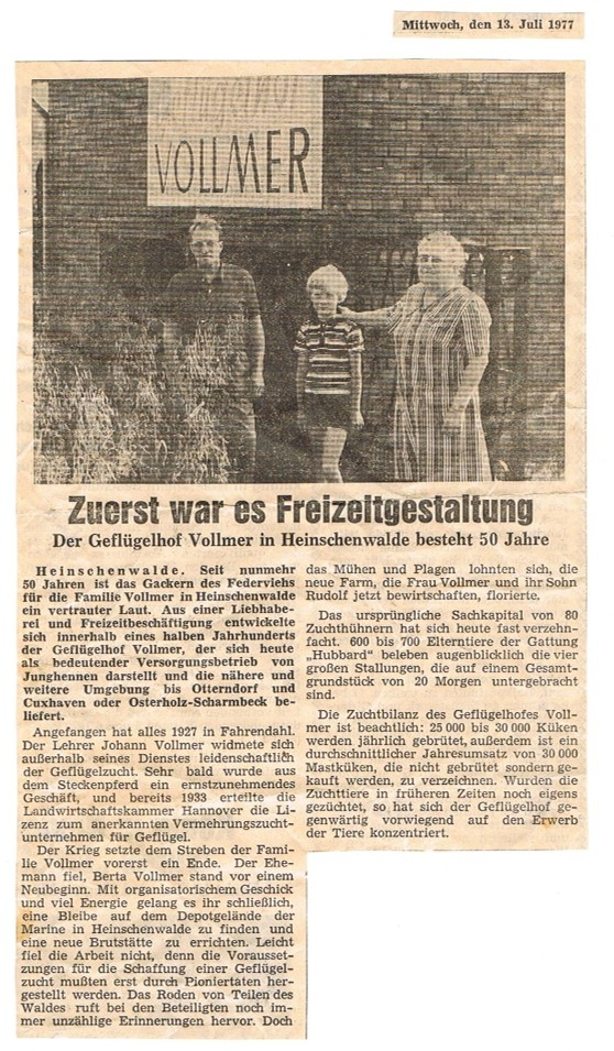 Nach dem Krieg, als Johann und sein älterer Sohn Helmut gefallen wahren, beschloss seine Ehefrau Berta mit dem jüngeren Sohn Rudolf neu anzufangen. Sie erworben das ehemalige Depotgelände der Marine und fingen an dieses zu einem Geflügelhof umzubauen.